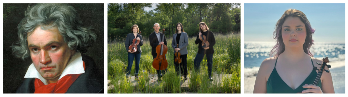 We close our season with “Breaking New Ground”, a program featuring Beethoven’s “Harp” Quartet (so named for all the plucking in the first movement), and a world premiere by our own violinist, Mable Lecrone, along with music by the Danish String Quartet.